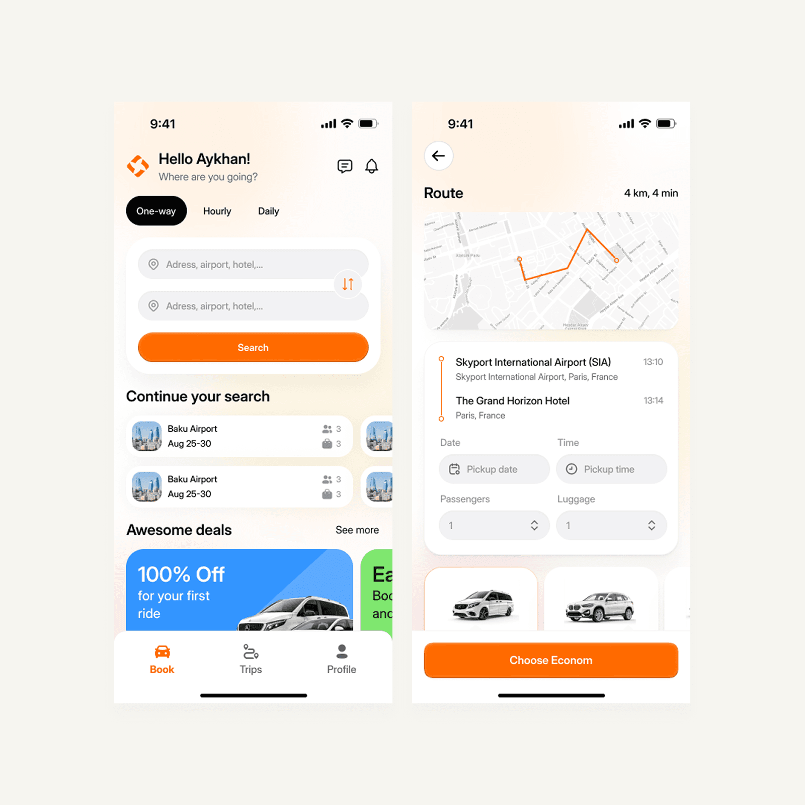 The platform was built with a mobile-first mindset and a clean, intuitive interface. We integrated essential features such as real-time flight tracking, flexible booking options (one-way, daily, hourly), transparent pricing, and multilingual support. Additionally, we developed a dedicated driver app to ensure smooth order management and timely service — all working together to deliver a seamless and stress-free travel experience.