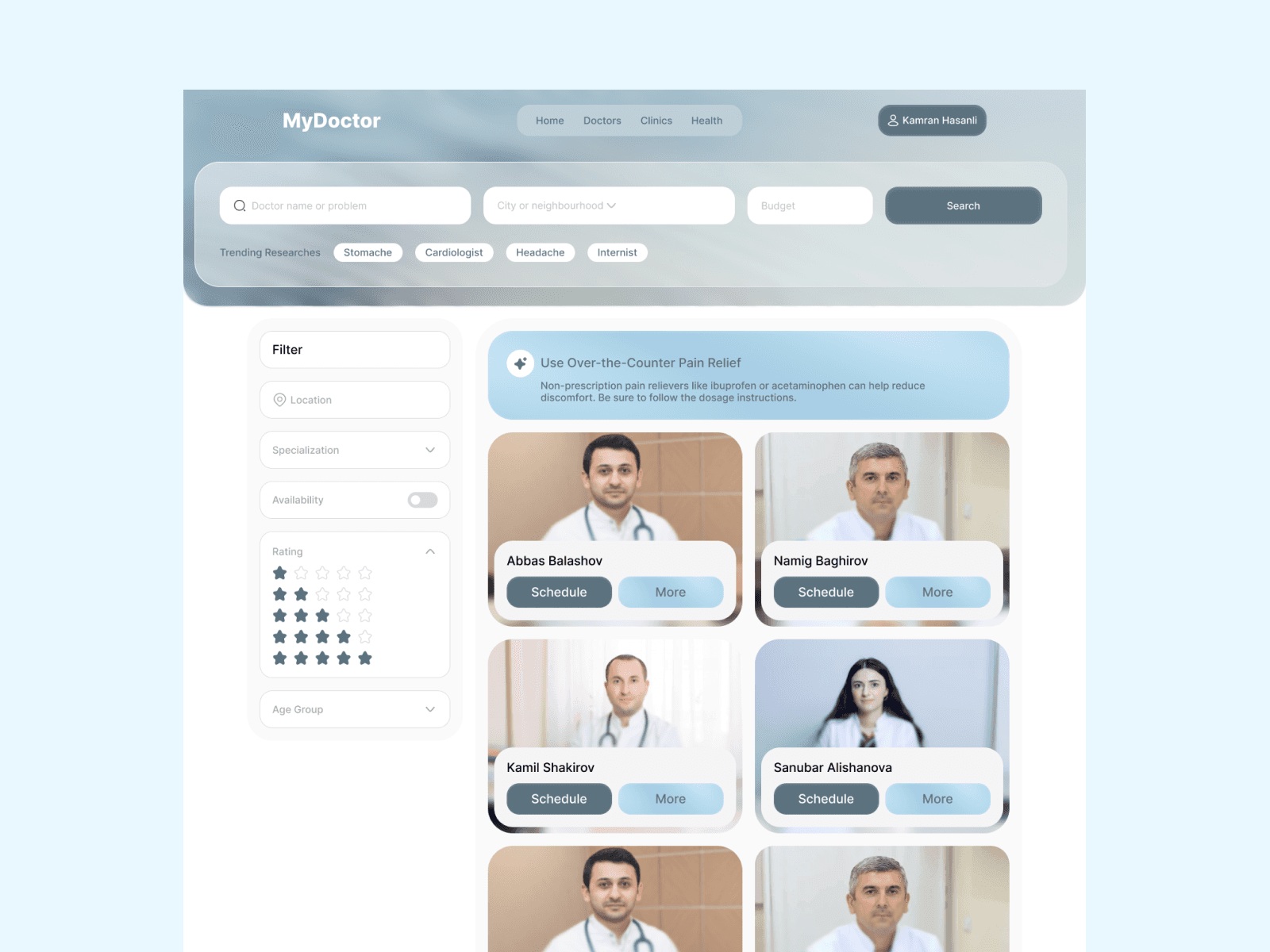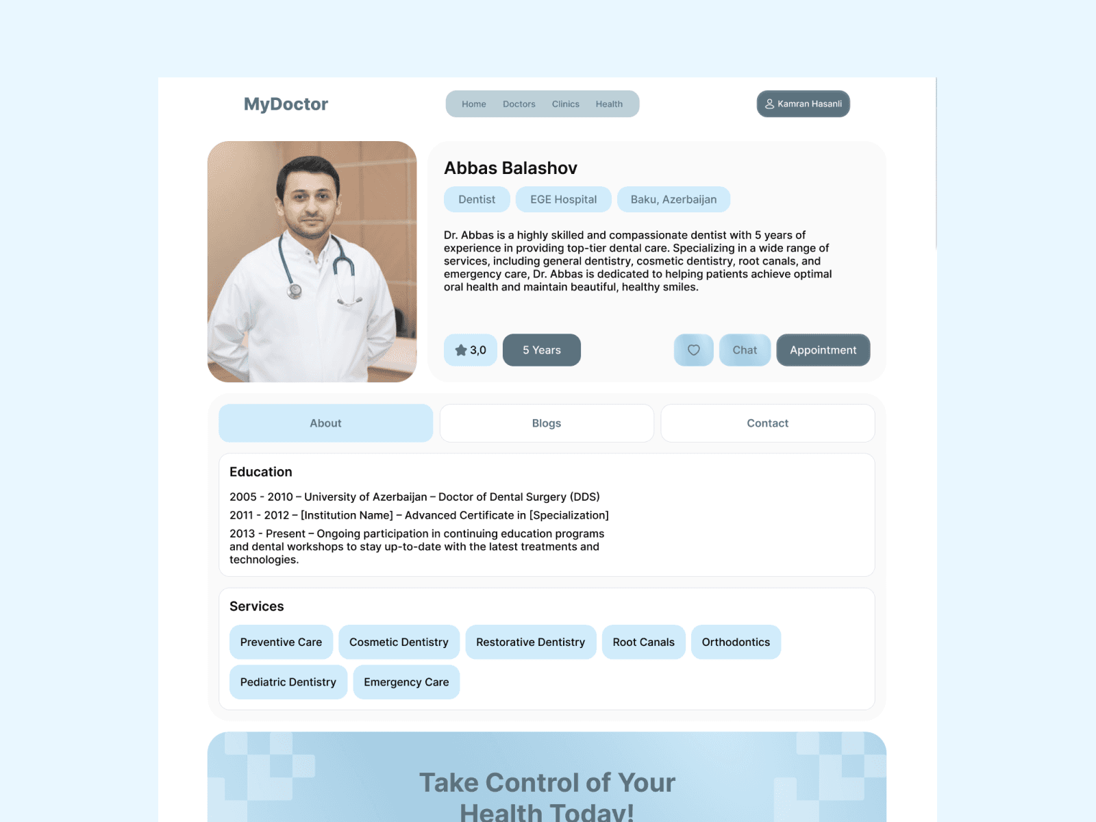 Figma Design for Startup Project which solutions related with medicine, clinics and doctors