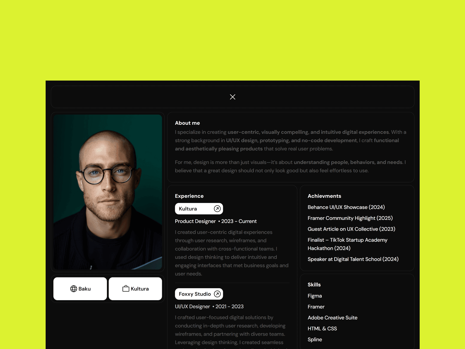 Framer portfolio template designed for modern and dynamic product designers.